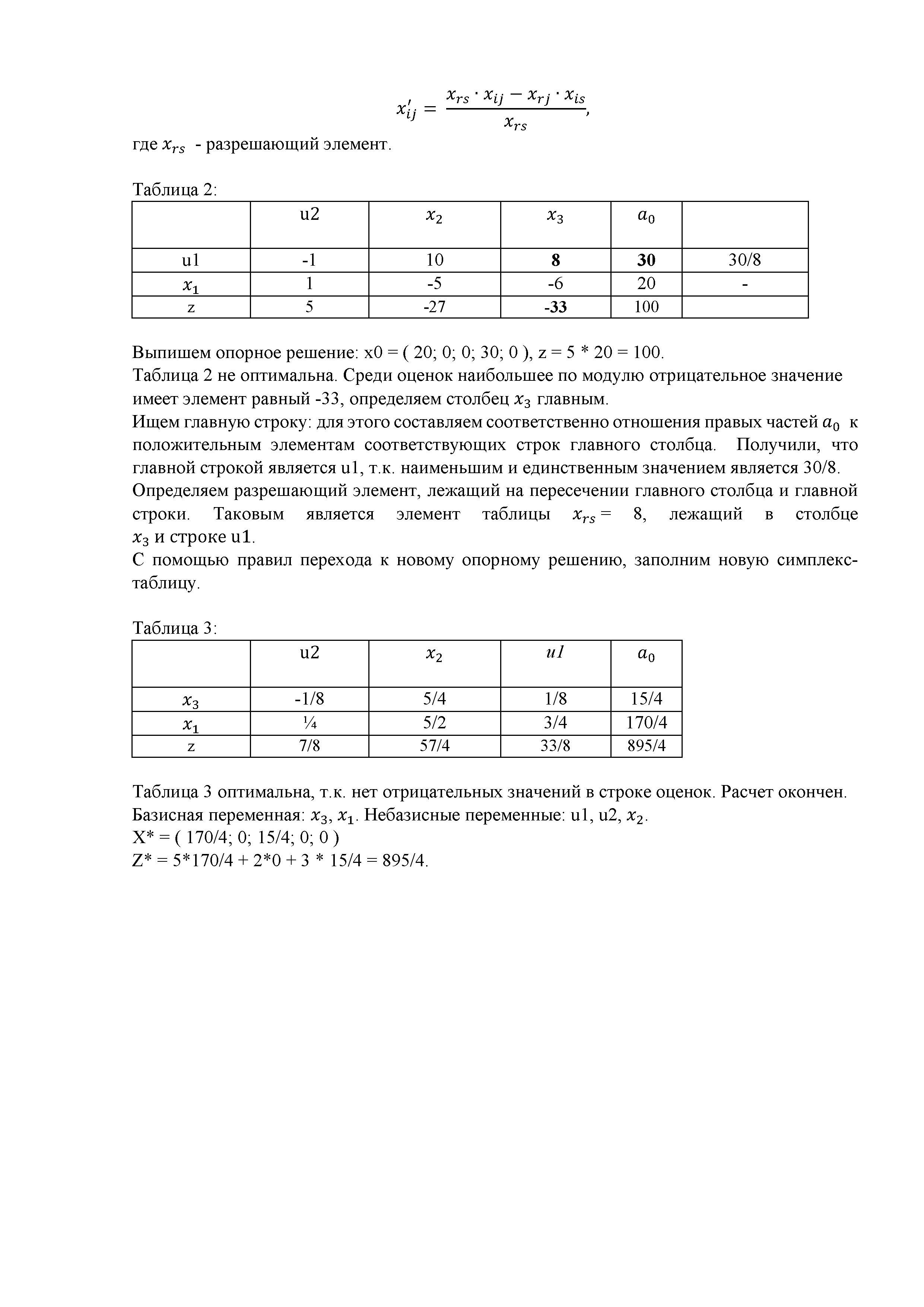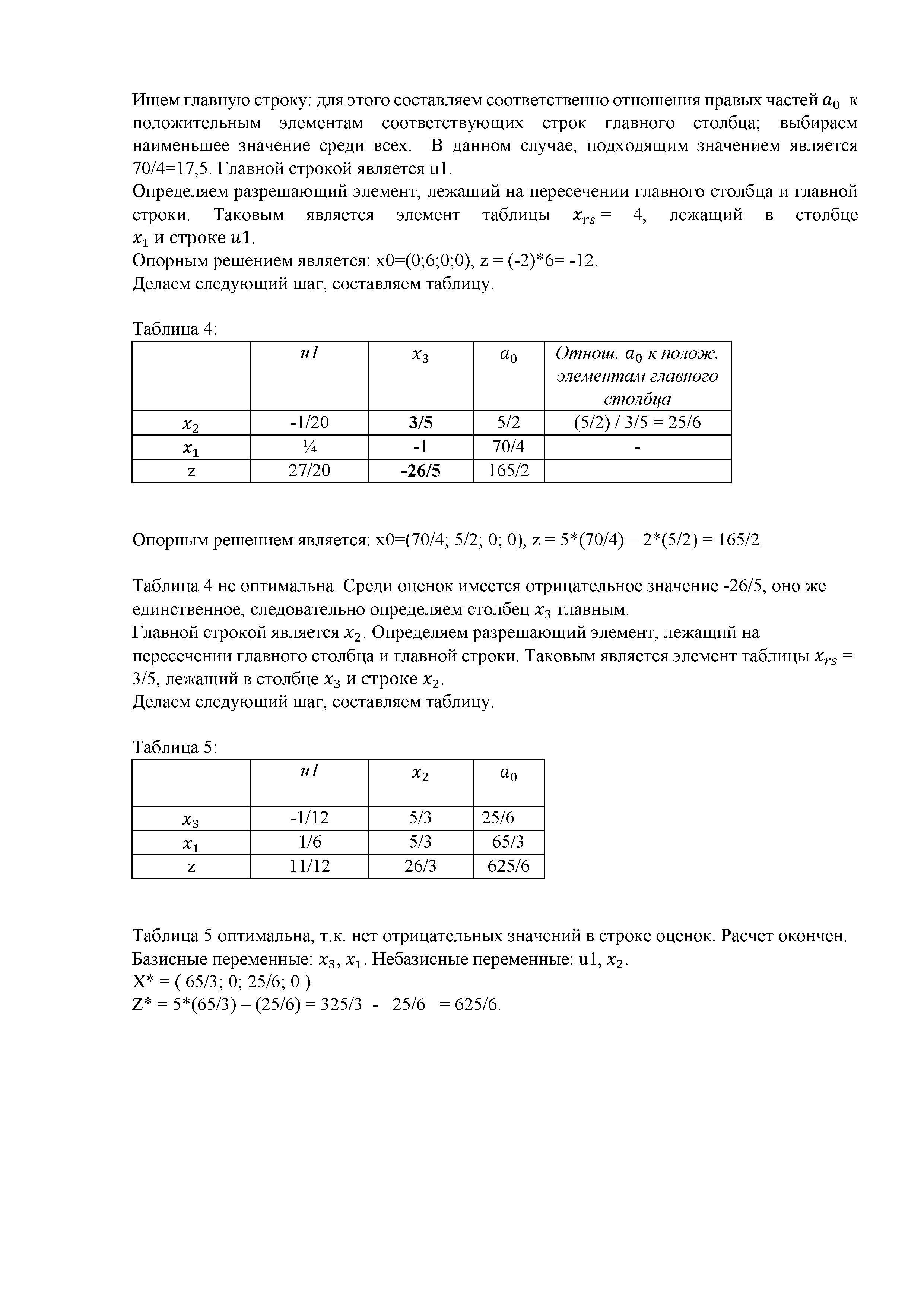 решение задачи линейного программирования симплекс-методом с естественным базисом